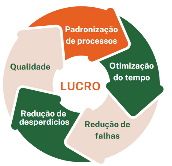 Implementação de processos mais eficientes que diminuem desperdícios e otimiza o uso de recursos, resultando em economias significativas.